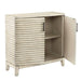 Rustic sophistication describes this linear design in distressed cream. Featuring two doors that open up to a spacious shelf, this Chest fits a style to home decor. No assembly required.
