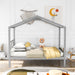 Featuring roof, this bed doubles as a semi-enclosed play place perfect for kids to sleep, watch TV or explore their imaginations. The storage space is located on the footboard and is a great location to store books and other accessories. This bed frame is the perfect solution for your kids’ bedroom. The contemporary style and neutral finish blend smoothly with any color scheme, allowing this design to shine! This bed offers a safe space for your kids to get a good night’s sleep.