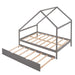 New Space Full Size Wooden House Bed With Twin Size Trundle