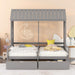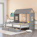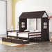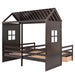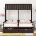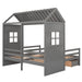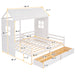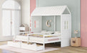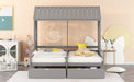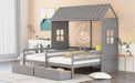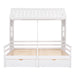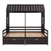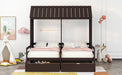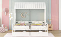 The double twin size canopy triangular house beds with drawers is an eye-catching piece with a simple design that will make perfect centerpiece for your bedroom. It is crafted with a sturdy pine wood and MDF construction.Two beds can be used as either a platform bed or a daybed, with 2 drawers under the bed for your convenience to store clothes and toys.