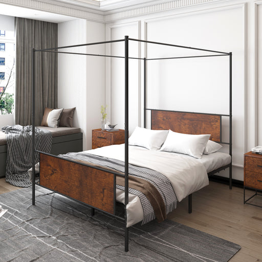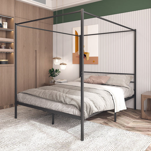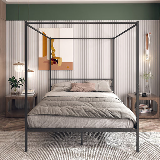 View full detailsHighlights Queen metal bed frame with four metal canopy columns. Simple and stylish black lines to provide a modern industrial appeal that’ll add a...
