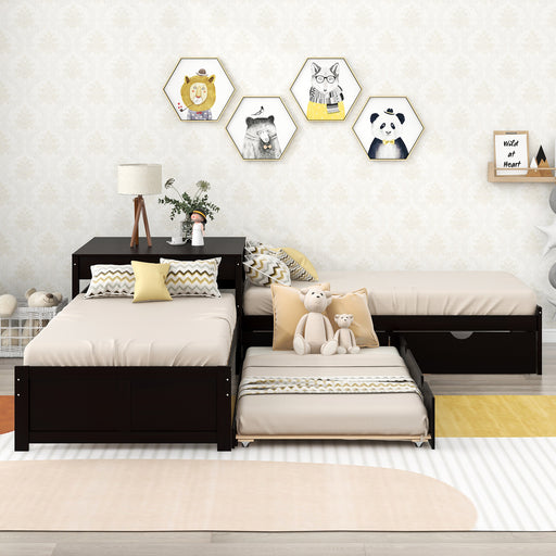 View full detailsHighlights This L shaped bunk bed features 3 beds,the twin corner platform bed is perfect for families who have several members, and more,you can a...