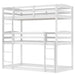 Low-profile design, the down bed is on the ground, and it's much safer for you. The upper and middle bunk features high guardrails that effectively provide all-around protection. Guardrails are solidly attached for added safety. With two built-in ladders to climb up and down. this bunk bed ensures top-notch security for you.