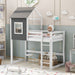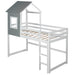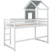 Twin Size Loft Bed with Roof, House Bed, Gray and White