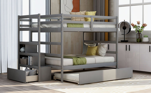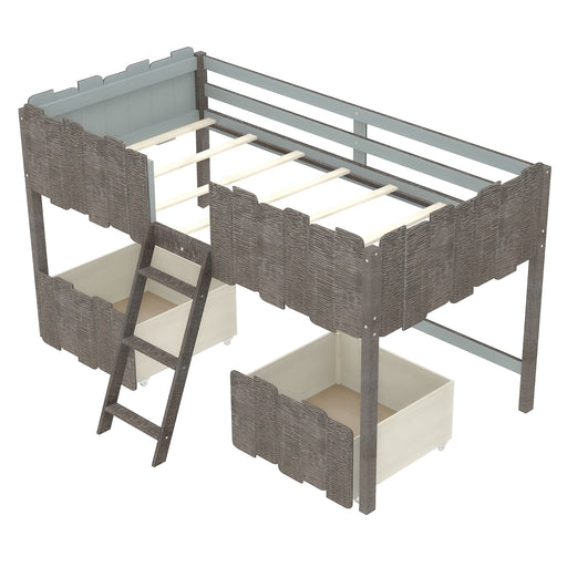 View full detailsHighlights Twin compartments of different sizes hide underneath the stairs of this bunk bed and a drawer are perfect for you to store quilts, bed s...