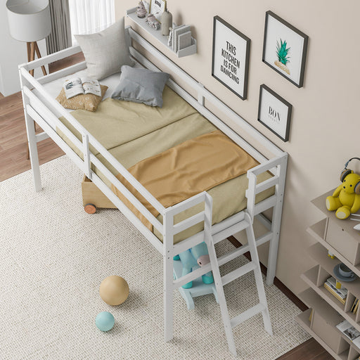 View full detailsDetails This Solid Wood Twin Size Loft Bed with Ladder is a minimalistic, stylish bed frame that works well with a variety of decorating styles and...