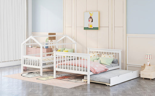 View full detailsHighlights A perfect space-saving solution for multi-child families.Crafted of pine wood and MDF, this two twin size house platform bed is sturdy a...