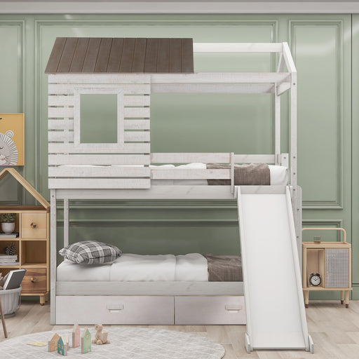 View full detailsHighlights Featuring a pitched roof and wall section with window, this unique and intricately designed bunk bed creates a fun and adorable space th...
