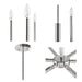 The INK+IVY Renzetti 6-Light Contemporary Candelabra Styled Chandelier offers a modern take on a traditional design. Featuring 6 uplights in a candle-inspired design, this chandelier flaunts a silver metallic finish for an elegant, eye-catching look. Also included are 4 piece extension rods, 3 that measure 12" and 1 that measures 6", which allow you to adjust the height between 13.25" and 49". Hardwired for indoor use only, this mid-century style chandelier is not compatible with a sloped ceiling and professional installation is recommended. Mounting hardware is included. Uses 6 Type B 40 Watt light bulbs (not included).