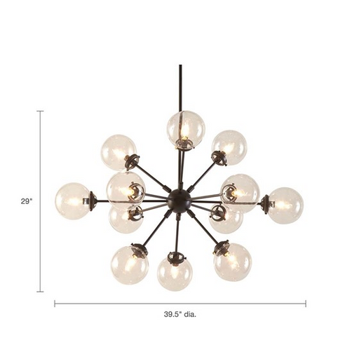 View full detailsWith its contemporary design, our Paige Chandelier adds intrigue to any space. The chandelier features twelve over sized bulbs and an adjusta...