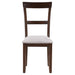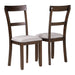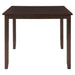 4. Classic dining table design with a spacious square table surface and elongated tapered base legs. The dining chairs feature an elegant profile with arched backs secured with thick dual wood slabs accented by industrial screw accents for an eye catching appearance. Manufactured with a compact build, this dining set has a small footprint