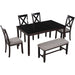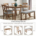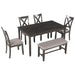 6-Piece Kitchen Dining Table Set Wooden Rectangular Dining Table, 4 Fabric Chairs and Bench Family Furniture