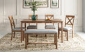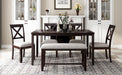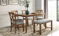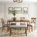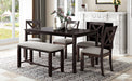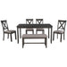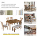 1. 6-Piece Dining Table Set: This Rectangular dining table set gives 4 wooden dining chairs, 1 dining table and 1 fabulous dining bench which can fully accommodate your family. Offer a touch of elegance to your dining area with our wooden dining table set.