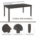 5. Assembly & Dimensions: Easy set up with clear manual instructions included. Table Dimensions: 60'L x 35.4'W x 30'H; Chair Dimensions: 17.3'L x 19'W x 37.8'H; Bench Dimensions: 38.6'L x 15.3'W x 18.5'H. Tabletop weight capacity: 400 lbs; Chair weight capacity: 400 lbs/piece.
