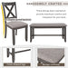 3.Handsomely Crafted: These dining chairs and bench can bring you fantastic relaxing experience because they feature an 'X'-shaped curved backrest, burlap cushions and cone-shaped legs. This dining set provide maximum comfort and relaxation for your back.