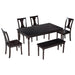 Classic Dining Set Wooden Table and 4 Chairs with Bench for Kitchen Dining Room, Espresso (Set of 6)