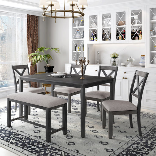 View full detailsSpecification Material:Wood Details 6-Piece Kitchen Dining Table Set Wooden Rectangular Dining Table, 4 Fabric Chairs and Bench Family Furniture ...