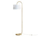 Bring modern minimalist style to your home with the Hampton Hill Attwell Arched Metal Floor Lamp. Flaunting a brass gold finish on the round arch stand and circular base, this floor lamp’s sleek design provides a glamorous flair to your space. The clean drum-shaped shade complements the contemporary elegance of the design, while softly filtering the light to give your room a warm glow. Place this modern floor lamp beside the sofa, end table, or in the corner of your room to give your space the style and radiance it deserves. Use one Type A bulb (not included). Handle with care, spot clean only.