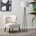 The Martha Stewart Clyde Metal Tripod 60" Floor Lamp offers a simple and modern update to elevate your living room decor. This floor lamp features a metal tripod base in a matte black finish that creates a slender and sleek contemporary look. The drum shade is not adjustable and is made from white linen to softly filter light and provide a chic contrast to the base of this floor lamp. This tripod floor lamp also uses a foot switch and gives your home a sharp modern accent. 1 Type-a light bulb is needed. Spot clean only. Comes with a 2-year warranty.
