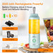 [PORTABLE BEAR BLENDER] This blue personal blender can make shakes and smoothies, juice and vegetable blends, jam, healthy baby supplementary food. Not only a juicer cup but also a travel blender for on the go, office, kitchen, sport or any outdoor activities. [FOOD-GRADE & STRONG POWER] Made of qualified and safe BPA free Tritan, this mini blender is perfect for baby food and hot drinks below 80 degrees. With sharp 304 stainless steel blades, it works with powerful 20000 high rotation speed in 120V, only need 40s to get fresh and nutrient extraction. [RECHARGEABLE BLENDER] Just need to charge 4 hours from USB devices for about 10 times using. If your laptop or mobile phones are out of power, it can alslo emit power. [SINGLE SMALL BLENDER] Comes with 11.84oz travel sports bottle and hidden blade lid, it's pretty easy and safe to carry and store. Recommend not to crush ice or nuts. [SAFE & EASY TO USE] Equipped with safety locked protection, this handheld blender will only work when the bottle is in correct position. It's convenient for cleaning by pressing the buttom to start automatic cleaning in a way of juicing.