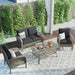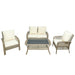 Take an elegant approach when it comes to furnishing your backyard or patio. Complete with 4 pieces, this set can seat a total of 4 people, coming with 2 chairs and a loveseat. Outfitted with soft foam cushions this, patio set offers the perfect blend of comfort and charm, also boasting rich beige cushion upholstery that is easy to spot clean and has been double stitched for maximum durability. The gradient commercial-grade rattan has been formulated to be weatherproof to prevent untimely cracking, fading, rot and more adding to overall longevity. Enjoy the center coffee table and entertain guests with food and drinks with its shatter-resistant tempered glass top.