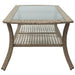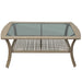 Table with tempered glass allows drinks, meals, or decoration on top. Wicker shelf add more storage function for your outdoor belongings.
