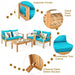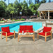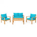 4 Pieces Patio Acacia Wood Thick Cushion Loveseat Sofa Set