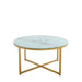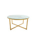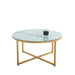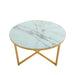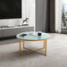 Cross Legs Glass Coffee Table with Metal Base, Marble White Top and Golden