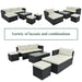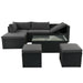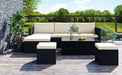 This outdoor sectional furniture is made of weather-resistant high-quality PE rattan, elegantly woven on a strong powder-coated rust-resistant steel frame, with a natural appearance.