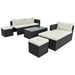 PE Wicker +Steel frame + Glass + Polyester+ Sponge |
