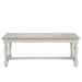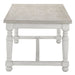 The Martha Stewart Winfield Coffee Table introduces a classic farmhouse charm to your living room décor. This rectangular coffee table features a reclaimed natural finish on the solid wood veneer top, creating a textural rustic look. The solid wood, spindle legs with bun feet flaunt a washed cream finish to complement the table top and complete the transitional design. Showcasing a simple style, this coffee table adds dimension and a charming farmhouse element to your home décor. Assembly required and tools are included.