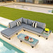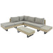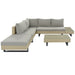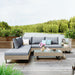 The L-shaped corner sofa with the iron leg structure of this wicker sofa set is one of the biggest features. The sturdy cross bar under the sofa for reasonable bearing ability. A variety of placement methods are suitable for any corner of the home. Another feature is the natural beige paired with elegant gray suitable for any style and match, will bring your outdoor life fresh and natural beauty.