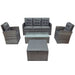 5-piece Outdoor UV-Resistant Patio Sofa Set with Storage Bench All Weather PE Wicker Furniture Conversation Set with Glass Table, Gray