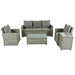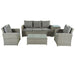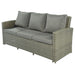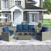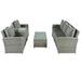 This set of PE rattan sofa is modern design and consists of 2 chair with armrests on both sides, 1 sofa, 1 rectangle coffee table & 1 square high coffee table. In addition, this set of PE rattan sofa has 10 cushions.