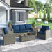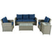 Our modern and simple style set of PE rattan sofa comes with cushions in three color to meet the different needs from users. We offer beige,grey and blue for cushions.The modern and classical design suitable for both outdoor and indoor.