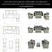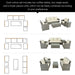 Sofa 600 lbs, Arm chair 300 lbs, Each Table 150 lbs