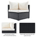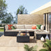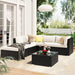 This wicker sofa set is constructed from top quality wicker, a durable material that's fitting for the outdoors, this set includes 2 corner sofas, 2 armless sofas, 1 coffee table with tempered glass top, 1 ottoman, providing relaxation for up to 5 persons.