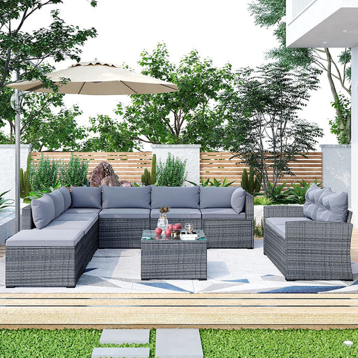 View full detailsHighlights Patio Furniture Set: This outdoor sectional sofa is constructed from rust-resistant steel frame and all-weather PE rattan, which ensures...