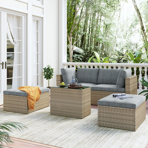 View full detailsOutdoor Patio 4-Piece Sectional Rattan Sofa Set, All-Weather PE Wicker Conversation Set with Tempered Glass Storage Tea Table for Backyard, Poolsi...