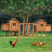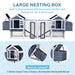 This large chicken coop offers spacious room for your pets to rest or play. Constructed with 2 nesting boxes, 47.2-inch playing runs, 2 ramps, and 2 removable trays, it is ideal for not only chickens but also rabbits, bunnies, or other small animals.