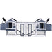 With pre-drilled holes and hardware manual packed, it is easy to assemble in the boxes because of symmetry. Overall dimensions:123.6x27.6x42.5inches(LXWXH). Weight: 80lbs. Area covered:23.7sq.ft.Please feel free to contact us if any problems.