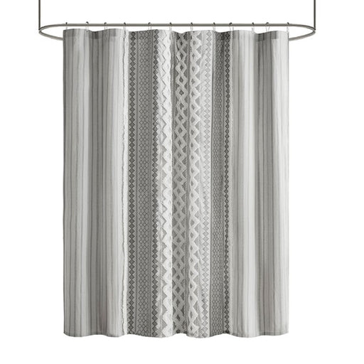 Imani Cotton Printed Shower Curtain with Chenille (Gray)