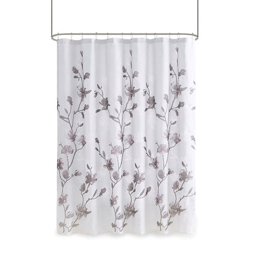 Magnolia Floral Printed Burnout Shower Curtain (Purple)