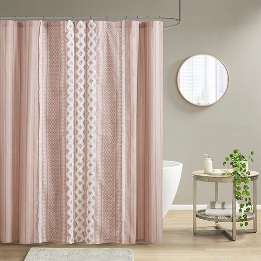 Imani Cotton Printed Shower Curtain with Chenille (Blush)