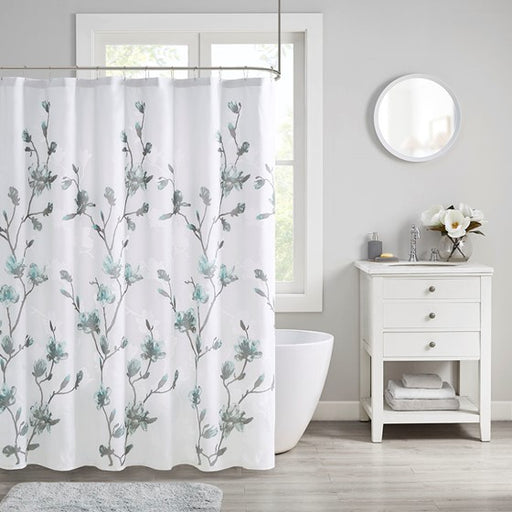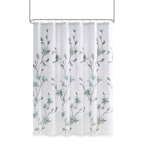 Magnolia Floral Printed Burnout Shower Curtain (Aqua)