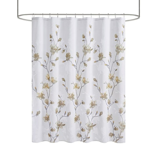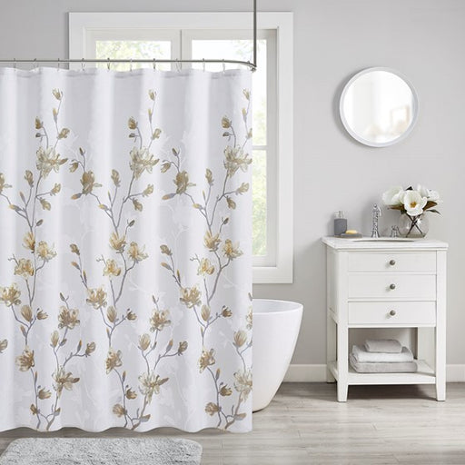 Magnolia Floral Printed Burnout Shower Curtain (Yellow)