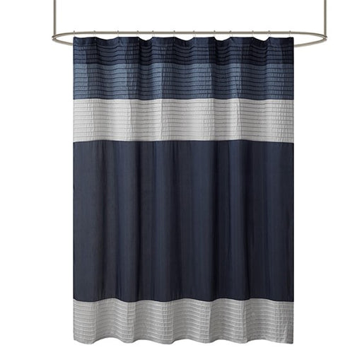 Metro Woven Clipped Solid Shower Curtain (Navy)
