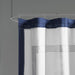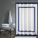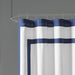 The Madison Park Greyson shower curtain creates a contemporary update to your space. Pieced, cotton duck fabric in solid white is in the center while a navy creates an outer border and inset border for a simple yet colorful new look. Machine Washable for easy care; Each shower curtain measure 72"x72" and is finished with 12 button holes at the top making it easy to hang; hooks, rod, and a water repellant liner are not included and will need to be purchased separately.