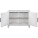 Made of high-grade MDF with wood veneer for top and Acacia wood for frame and legs, the cabinet is highly durable with heightened stability. Two doors with antique pull handle, make it easy to open and close the door.