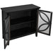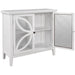This Accent Storage Cabinet blends unique details and adjustable features and brings extra storage and a lived-in feel to any corner with this classic two-door cabinet featuring spacious storage. Crafted with MDF with veneer for top and pine wood for framework, the storage cabinet is solid and durable for long time use. The cabinet provide ideal storage for dishes, books, or board games.